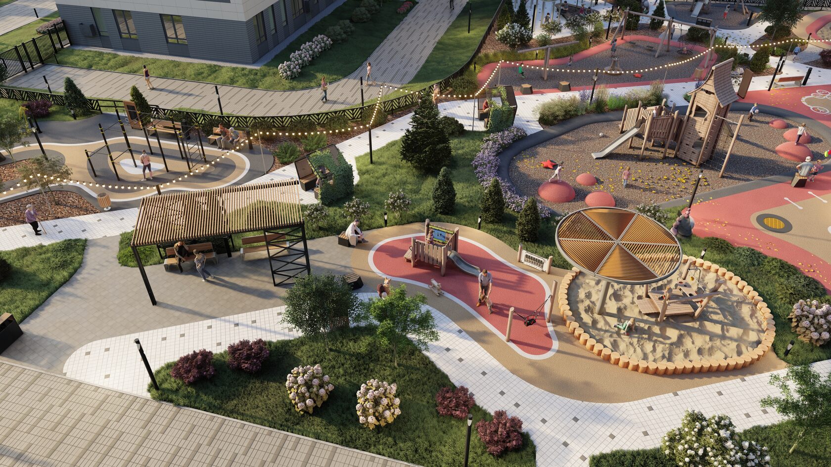 Благоустройство предусматривает площадки для занятий спортом и отдыха, ориентированных на разные слои населения (детские игровые площадки, спортивные площадки, площадки для отдыха взрослого).